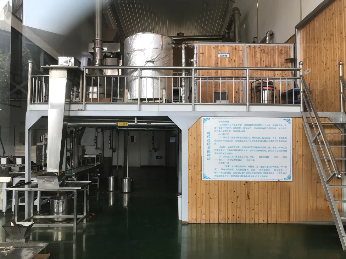 福茶选用来自湖南神采界自然保护区的无污染原料。在制作茯砖茶之前,茶叶会经过气流分离器进行净化,然后在无尘生产车间进行封闭式加工。同时,我们还会使用除湿设备和温控设备,以确保储存过程中的茶叶品质。